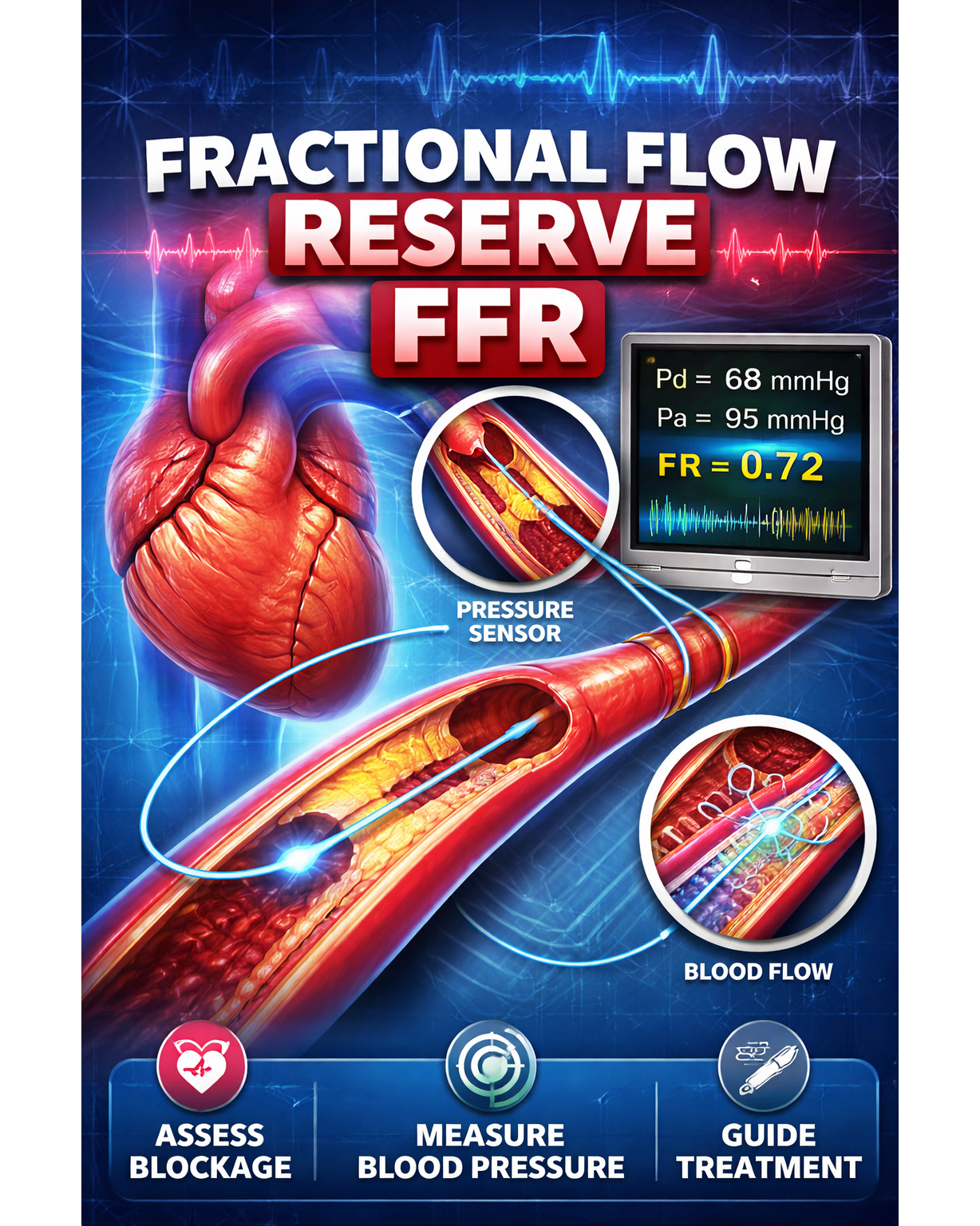 Fractional Flow Reserve (FFR) is a revolutionary technology used to measure blood flow in coronary arteries and determine whether a blockage is serious enough to require intervention. FFR provides doctors with a clear understanding of how a particular blockage is affecting the heart, which can significantly influence treatment decisions.
